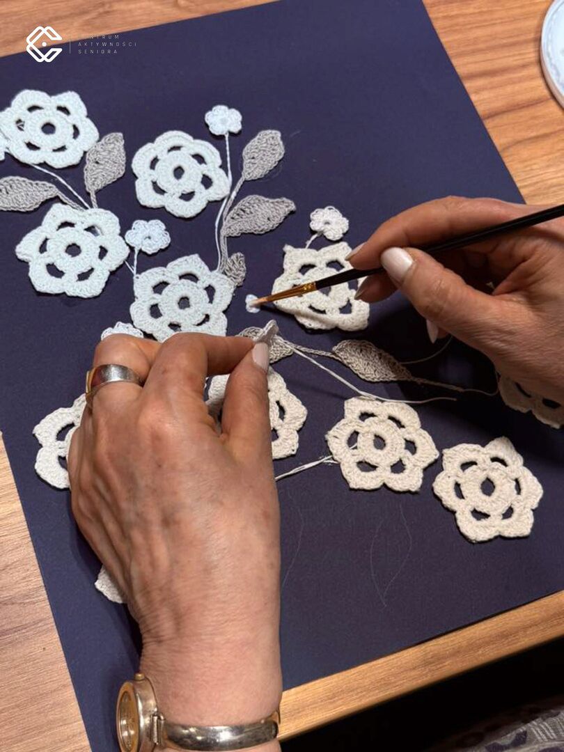 W Centrum Aktywności Seniora nie brakuje kreatywności i artystycznych pasji. Podczas zajęć rękodzielniczych „Oczko po oczku”, prowadzonych przez Lidię Biernat, uczestniczki tworzą niezwykłe prace szydełkowe, które zachwycają starannością wykonania i bogactwem kolorów.